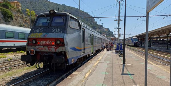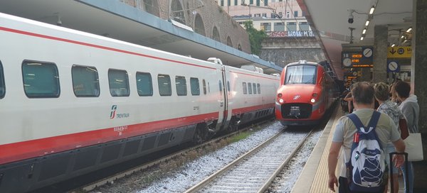 A következő úticélunk az Olasz Riviéra fővárosa, Genova volt. A 650 ezres településre közepesen komplikált az eljutás a Francia Riviéráról, de az olasz oldalon már tervezik a jelentős kapacitásbővítést. Az SNCF tengerpart melletti személyvonatáról a végállomáson, az olasz határváros Ventimigliában kell átszállni egy kétóránként közlekedő olasz regionális vonatra. A zsúfolt és meglehetősen korszerűtlen járművön nem működött a klíma és 20 perc késést is összeszedett Genováig az egyvágányú pálya miatt. Az egyetlen pozitív adalék az volt, hogy legalább helyjegy nem kellett rá.
