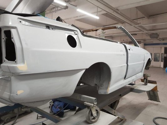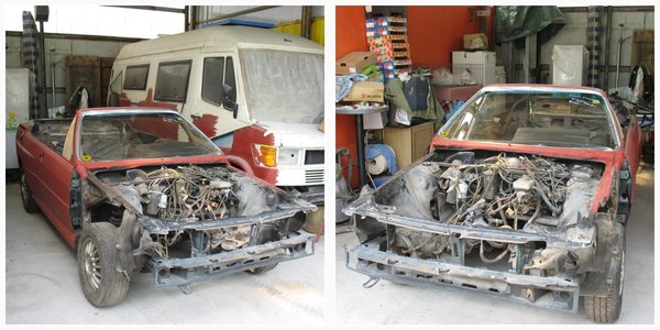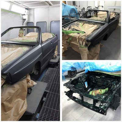 Másnap azonnal elkezdtem restaurálni. Takarítás, homokszórás, porfestés, új alkatrészek beszerzése következett – a szokásos sziszifuszi tennivalók. A tankot félbevágtuk s kitakarítottuk, a befecskendező rendszer elemeit (= Mengenteiler, Warmlaufregler) felújítottuk. A töltőlevegő-hűtő három helyen is el volt törve – ez lehetett a motorprobléma egyik gyökere. Egy, korábban a Lotus Formula-1-es csapatánál dolgozó barátom tette rendbe. Minden rendben ment, az eredmény jó lett. A karosszériát egy korábban a Karmannál dolgozó ismerősömre bíztam – a legjobb kezekbe került! A belseje menthető állapotban volt. Összesen két kocsiba került ez a beltér, itt tehát nem opció a majd' szerzek egyet egy bontottból terv.