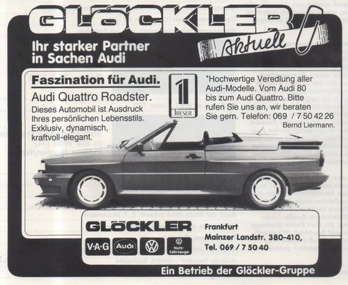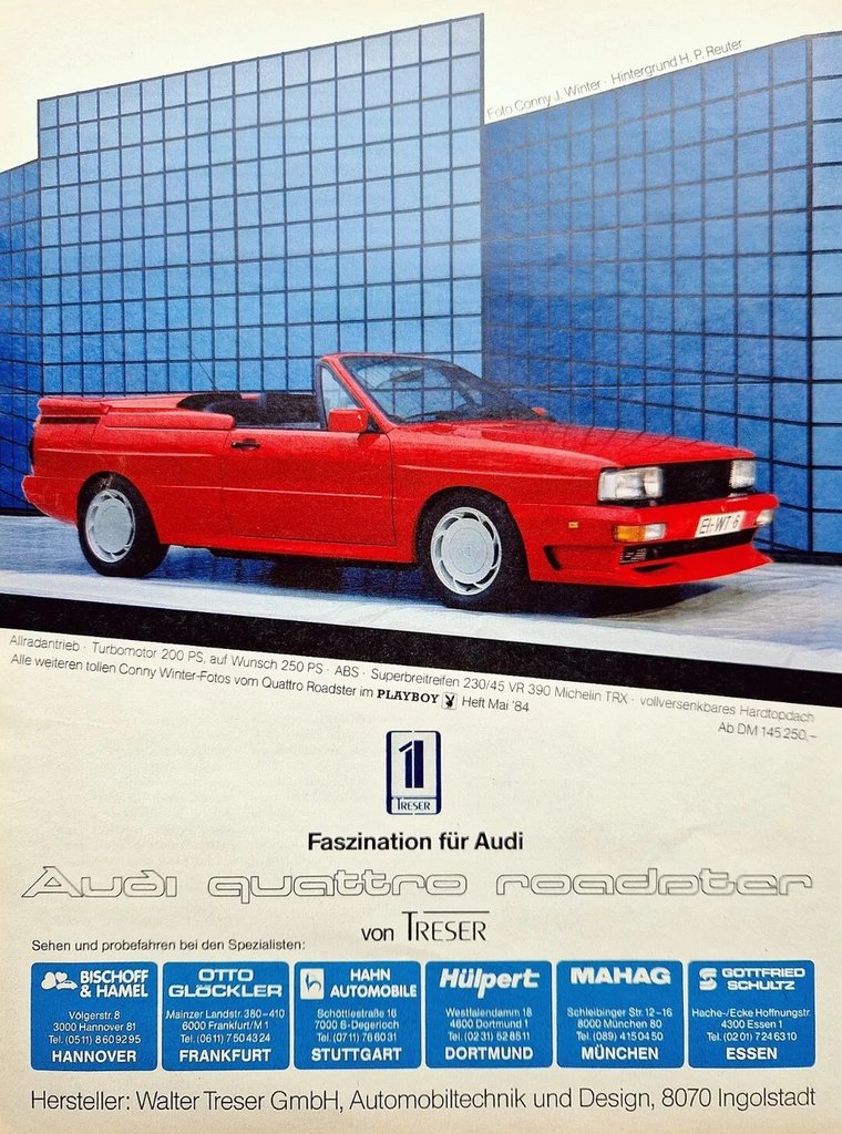 Az Audi régóta nem gyártott ekkor már nyitott tetejű kocsit, s bár voltak próbálkozásaik – például a hatvanas évek végén a 100-asból is épített egy prototípust a Karmann – de a sorozatgyártásig nem jutottak el. Treser viszont állhatatos volt, életének legfontosabb autójából – az Audi quattro-ból – roadstert is akart készíteni. De nem egy „hétköznapi”, sima vászontetős kocsiról, hanem egy keménytetősről álmodott. Olyanról, amelyik tetejét nem hajtogatja, hanem egyben mozgatja a jármű – a Peugeot csinált ilyen 1934-ben, a 401-es egyik kivitele fém tetejét a csomagtartójába tudta emelni.