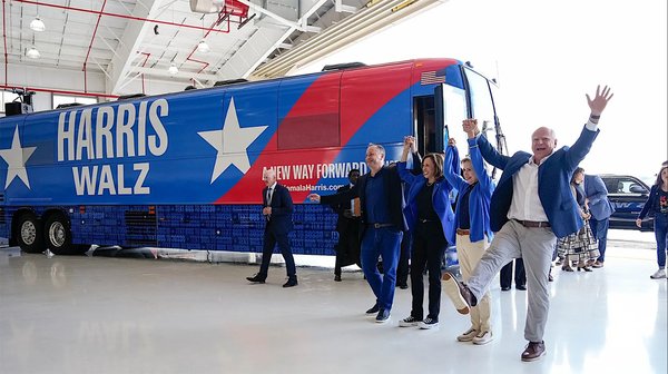 Ezzel a húsztonnás, páncélozott busszal kampányol Kamala Harris