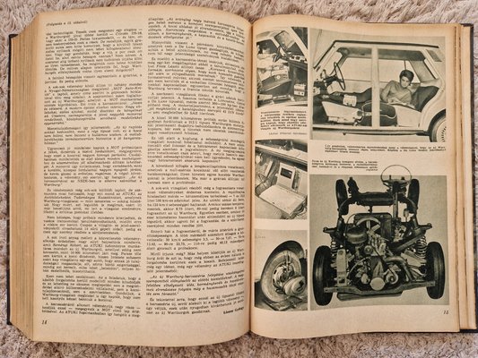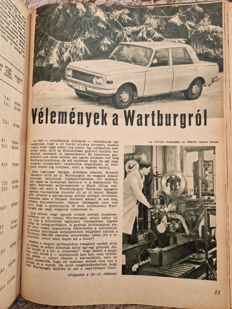 Beszereztem a korabeli prospektusokat is hozzá, hiszen veterán vizsgáztatásnál ezek megléte már kötelező, hogy bizonyítani lehessen, hogy tényleg volt ilyen színben, konfigurációban, s esetleg az extrákat is meg lehessen mutatni – de ugye extrákról egy Wartburg esetében nem nagyon lehet beszélni. Amikor egyébként elvittem a veterán vizsgára, lehívta a vizsgáztató a többieket az aknába, mondván, hogy na, ilyennek kell lennie egy restaurált autónak!” Aranyos a szögletes műszerpanel, ez még a csíkműszeres sebességmérővel szerelt kialakítás, olyan, mint egy higanyos hőmérő, úgy fut végig a piros sáv a sebességgel arányosan.
