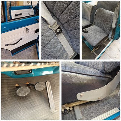 Gyárilag szerintem nem biztos, hogy volt benne biztonsági-öv, szerintem inkább utólag került bele a kétpontos öv, amit a Doblina gyártott. A későbbiek fogadócsatját a padlóhoz csavarozott drótkötél tartotta, ezt még az embernek a teste előtt kell összecsatolnia. „Eltérő, hogy az A- oszlop belső burkolata sem fekete még illetve a kalaptartó kárpitja is fehér. Régi eisenachi szokás, hogy a hátsó doblemez ülés felőli részére ragasztottak gyári javító textilt is, ez is kapott már. Sikerült megmenteni a saját ülésszövetét is, amit kárpitossal leszedettem, majd itthon körülbelül 3-4 hónapnyi, többször ismételt mosás/szárítás után sikerült erre az állapotra hozni, mint ami a képeken is látható.