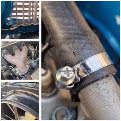 Újak a gyújtógyertyák és a trafók. A kábelkötege az eredetije maradt. A motoron egyébként még nincs generátor, dinamó termeli az áramot – ez új. Hűtőradiátort egy hazai hirdetési portálon találtam, újat. A hűtőrendszer problémás pontja a vízpumpa, az, ha nincs rendesen összerakva szinte mindig szivárog. Ezen még nem.
