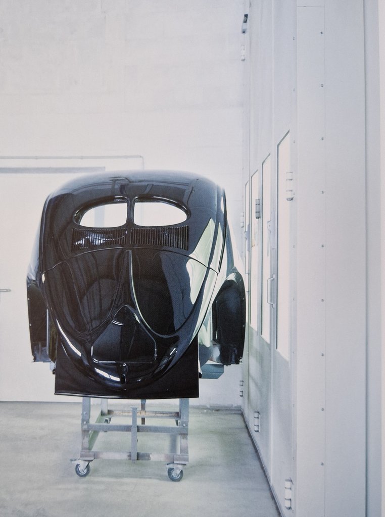 Az alap nitrolakk, „ez az 1930-as években még gyakori volt az autókon és a Beetle prototípusain is, és ha gondosan feldolgozták, mélyebb fénye van, mint a jelenlegi vízbázisú festékeknek. A nitrolakk azonban kissé problémás (kb. 70 százalékban oldószert tartalmaz, a gőzei egészségkárosítóak és tűzveszélyesek), a használata engedélyhez kötött. Összesen hét lakkréteg borítja a fémlemezt, és mindegyiknek nem kemencében kellett száradnia, hanem békében, csendben és abszolút pormentes helyiségben. Hiszen a nitrolakkos bevonat csak akkor ad tökéletes eredményt, ha az alsó réteg minden oldószert elpárologtat. Ennek az időigényes eljárásnak az eredménye szó szerint káprázatos, a festék kifürkészhetetlen mélységű” – meséli.