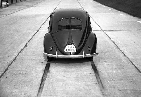 Ahogy a világháború előtti ősautókat kutató, belőlük doktoráló járműtörténész barátom, a magyarjarmu.hu oldal szerkesztője, Dr. Négyesi Pál összefoglalta: „Porsche »szokásos« munkamódszerét alkalmazta: akitől csak tudott, másolt, s a végeredményt a sajátjának adta el. Így állt össze a Ganz-féle elveket, a Barényi-féle rajzot és a Ledvinka-féle műszaki megoldásokat ötvöző KdF-autó.” Amiből nemsokára „Bogár” lett – ahogy először ironikusan nevezték a New York Timesban 1938. július 3-án. Szóval ez a VW 38 előtti sorozathoz tartozott, majd folyamatosan tesztelték őket és bemutatták azokat a nagyközönségnek, rendszeresek voltak a sajtó- és propagandautak.