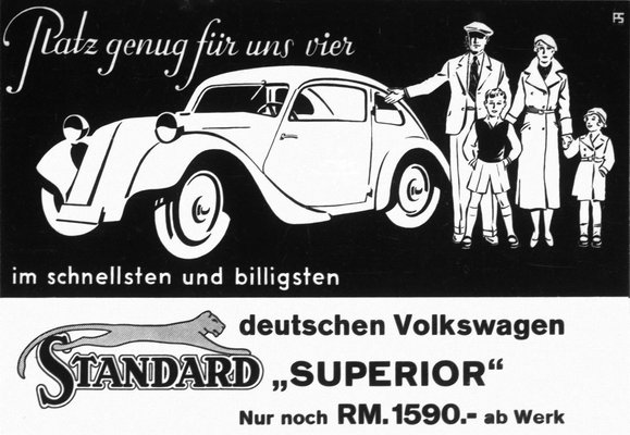 Amíg Porsche prototípusai nem jutottak túl a prototípus fázison, a Ganzék által bemutatott Standard Superior a prospektusában egy tipikus német családdal, két gyerekkel került bemutatásra, akik büszkén állnak a farmotoros bogárhátú Standard Superior mellett, miközben azt mondja a szöveg, hogy „Rengeteg hely négyünknek a leggyorsabb és legolcsóbb német Volkswagenben”. Ez találta telibe a Führer vízióját!
