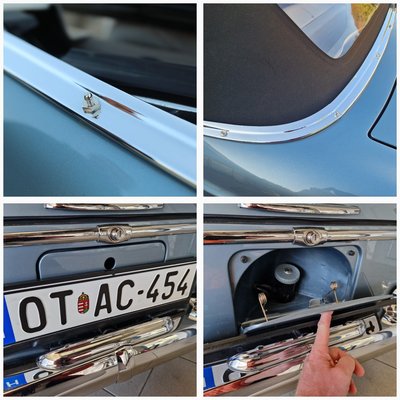 Ezen teljesen össze volt törve a fényes, krómozott keret a tető körül. Ezt újra kellett csinálnunk, nulláról kezdve. Rézlemezből legyártattam, amit le kellett krómozni. Ez leírva egyszerű, de mire ez elkészült, olyan állapotra, hogy vihessük a krómozóhoz, addig egy ember dolgozott rajta egy hetet. Napokon át csiszolták, igazították, ellenőrizték, csiszolták, igazították, ellenőrizték, majd még sokszor, vagy ötvenszer, de lehet, hogy százszor. S csak utána jött a krómozás.