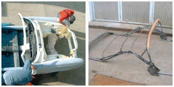 Lekértem pár tétel árát a Kárpát utcából is, konkrétan erre az alvázszámú kocsira, ezeket kaptam: stabilizátorrúd szilent 20.875 forint, stabpálca szilent 2.970, első kerékagy csapágy 13.635-18.010 forint között. Az első, tető tömítő gumi 66.350 forint, az ajtókéder 643.250 forint/darab. Erre lejjebb még visszatérünk. „Azért is fontos a gyári alkatrészek használata, mert az utángyártott alkatrészek/lemezek nem illeszkednek, sok utómunkát igényelnek. Feltettük például a belső, utángyártott doblemezt, majd rá a külső sárvédőt. Természetesen nem illeszkedett, így fordítva csináltuk. Először csavarokkal rögzítettük a külső karosszéria elemeket, hogy vonalba fussanak az élek, jók és pontosak legyenek az illesztések. Majd ehhez igazítottuk a belső doblemezt. Az ülések és a lábtér alatti rész ugye dupla fenéklemez, de a kabrioletnél a kardánbox is végig három (!) milliméter vastag lemezből készült, szemben a kupén ugyanezt az alkatrészt egy milliméteresből nyomták.