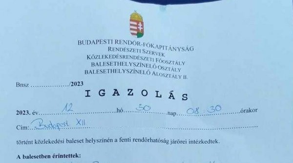 A helyszínen az összetört Fiestáján egy rendőrségi cetli fogadta: Az autóját egy osztrák rendszámú VW kombi ittas magyar sofőrje törte össze, a balesetben a Ford előtt parkoló, ukrán rendszámú SUV is megsérült, azt is lezúzta a részeg sofőr. Fontos információ, hogy az SUV sérüléseit nem a Ford Fiesta okozta, nem "rátolásos" károkozás történt, a fehér Golf kombi a jobb oldalával végezte a rombolást, olvasónk autójának frontja egyáltalán nem sérült.