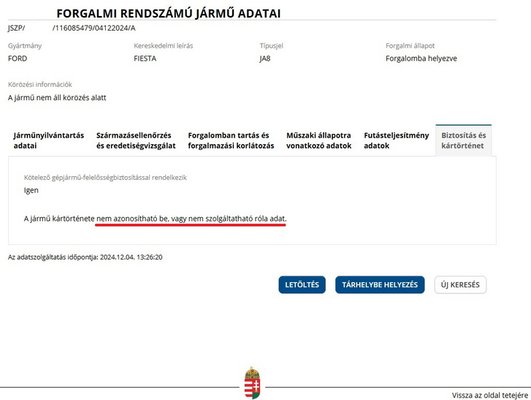 Szemmel láthatóan azonban még nem teljesen sikerült elrendezni a pixeleket, maradt még egy kis zavar a mátrixban. A Fiestát ért baleset nyomán annak kellene szerepelnie a kártörténeti nyilvántartásban, hogy "károsult". Helyette ennyi szerepel: "A jármű kártörténete nem azonítható be, vagy nem szolgáltatható róla adat." Nem feltétlenül jó ez, mivel a KKNYR tartalma "szentírás", ha ott nem a valóság szerepel, bármikor újabb bonyodalom adódhat.