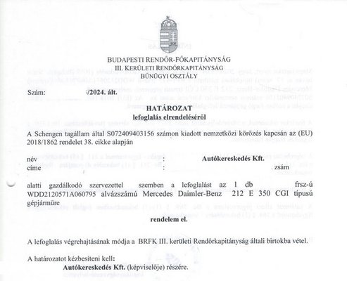 A kormányablak ügyintézője ugyanis arról tájékoztatta a kereskedőt, hogy az autót nem lehet bejegyezni a cég nevére. Arra a kérdésre pedig, hogy miért, az ügyintéző közölte, hogy a Mercedes nemzetközi körözés alatt áll. A kereskedés alkalmazottja először azt hitte, hogy ez valami ördögi vicc, hiszen az autó hatodik évet fut az országban, nemrég járt eredetvizsgán, műszakin és a JSZP szerint is tiszta a jogi háttere.