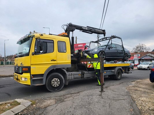 A harmadik kerületi rendőrség inkább pénzért dolgozó, lopóautós alvállalkozót bízott meg a művelettel, és mire a kereskedő "szabadon visszatávozhatott" a kereskedésbe, a sárga Merci már fel is pakolta a szürkét a platóra. Majd adtak egy hivatalos papírt a lefoglalásról, viszontlátásra!