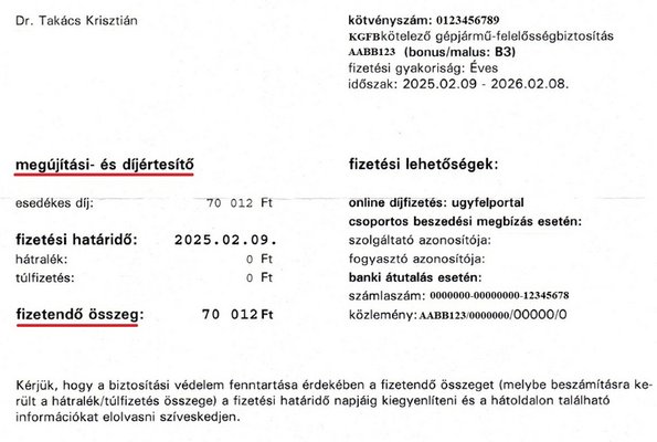 Gyöngyvér az egyik legnagyobb hazai társaságnál kötötte meg kötelezőjét céges autójára évekkel ezelőtt, negyedéves díjfizetési gyakorisággal. Váltani nem szokott, idén sem tervezete, megvárta az éves díjértesítőt, az abban lévő összeg pedig vállalható volt: negyedévente 30 ezer forint.
