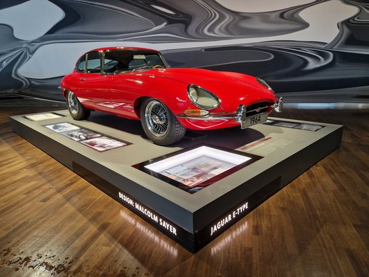 A kiállított E-Type elvileg a D-Type-on alapul, utascellához kapcsolt segédkerettel, amely a motor, az első felfüggesztés és a motorháztető elhelyezésére szolgál. Enzo Ferrari ezt a Jaguart "minden idők legszebb sportautójának" tartotta. Egy New York-i kiállításon azt írták róla, hogy „Sayer egyedülállóan ötvözte a tudományt és a művészetet, azért, hogy kivételes szépségű, időtlen formákat hozzon létre. Tudományt vitt az autótervezés művészetébe, alkotásai pedig tudományosan előállított műalkotások”. Egyébként pedig nemcsak a nagy teljesítményű autók tervezésében alkotott maradandót, zseniális karikaturista volt, zenélt, és a visszaemlékezések szerint nagyon jó családapa is volt – szívinfarktus vitte el.