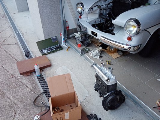 A motort egy budapesti gépműhelybe vittem fel felújításra, ahol kiderült, hogy az egyik égéstérnél a hengerfej át volt szakadva. Ezt megjavították, s felfúrták a hengereket. A főtengelyt új csapágyakkal rakták össze, majd centírozták, végül pedig új dugattyúkat és gyűrűket kapott a motor. Közben elkészült a dinamó és az önindító felújítása is.