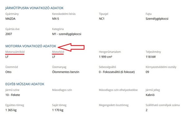 Szóval, a "Motorazonosító adatot nem tartalmaz, típuskódja megállapított" terminus technicus úgy értelmezendő, hogy a kisavazott (bocsánat, a rozsda által olvashatatlanná tett) motorszámú autók mellett olvasónk Mazdája (van olvasható motorszám a motoron, de a forgalmi és a nyilvántartás csak a motorszéria kódját tartalmazza) is ide sorolandó.