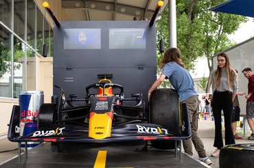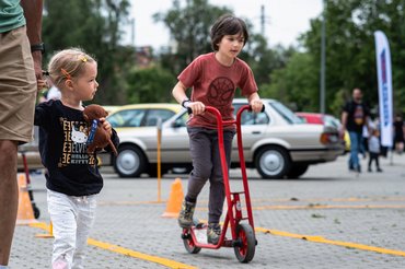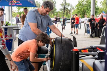 Dugig volt apró emberekkel a kicsi, épített ügyességi pálya: folyamatosan köröztek a rollerek és bringák. Még néhány csücskösebb féktávon beszúrást is láttam. De volt, akinél a tűzoltás talált be, és olyan is, akinél a virtuális autóvezetés. Azt már az előző anyagban is említettem, hogy a Red Bull kerékcserés programja nekem is nagyon adta (kár, hogy végül nem nyertünk).