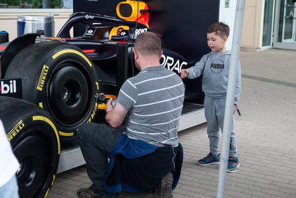 Ha te magad is versenyeznél, azt is simán megteheted: 2025 második Parkoló Parádéjára is elhozza a Red Bull a Pit Stop Game-et. Ez pontosan az, amire egyébként tippelnél: lesz egy csonka F1-es versenyautó, amin időre kell kereket cserélni. A feladat nem könnyű, legutóbb próbáltam.