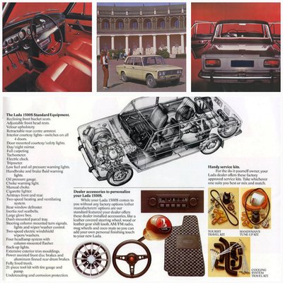 Ez utóbbi tény egyébként egy ma már megmosolyogtató gesztust is eredményezett. Ha az ember megnéz egy angol Lada 1500S prospektust, azt látja, hogy a jópár, utólag felszerelhető/cserélhető kiegészítőn kívül számtalan alkatrészcsomagot is kínáltak hozzá. A rendelhető könnyűfém felnikről, sportkormányról és az AM/FM rádióról fent is szó esett már, ezen felül fa vagy bőr váltógomb, kókusz szőnyeg is szerepelt nyugaton a kereskedő által kínált tartozékok között a Lada 1500S személyre szabásához.