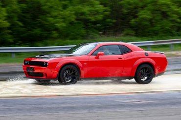 A szlalomban az a poén, hogy a bóják egyik oldalán száraz aszfalton tapadnak a kerekek, a másik oldalukon nedves gyantán csúsznak. A talaj változó, a pilóta menet közben alkalmazkodik: könnyű elhinni, hogy jót fog a gumi az aszfalton, aztán jön a meglepetés, hogy mennyire nem akar megtapadni a locsolt műgyantán. A kezdeti meglepetést már néhány kör után rutin váltja, és a lényeg is pont itt van: a vezetéstechnikai tréning felkészít ezekre a helyzetekre, így a sofőr pánik helyett megfelelő reakcióval válaszolhat.