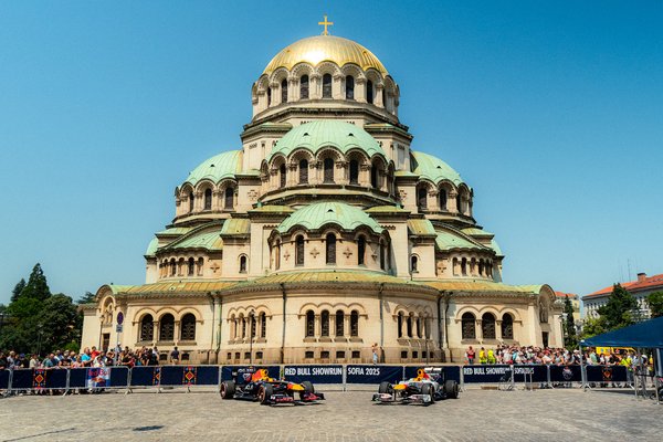 Az Alekszandr Nyevszkij-székesegyház – ikonikus ortodox temploma, Szófia legismertebb épülete – szolgáltatta a bázist. Itt nőtt ki a földből a rögtönzött boxutca, ahol sok féle Red Bull Activity és látványosság várta a bámészkodni vágyókat. Gondolok itt a szimulátorra, a pit stop challenge-re, stunt rider oktatásra, de megnézhetted a Red Bull Driftbrothersék híres BMW M4-es versenyautóit is, illetve igazi F1-autókat a közelmúltból. A pilóták pedig nem mások, mint David Coulthard, volt F1-es versenyző, és Nikola Tsolov, az F3 feltörekvő pilótája.