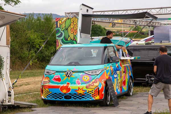 Ha pedig fesztivált nem maradhatott ki a tökipompos, a kávé és egy nagyon gizda ID.Buzzból kérhető fröccs.