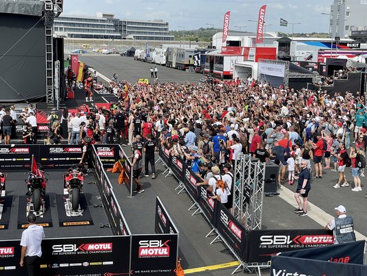 Miután lenyomtuk a veretést a pályán, a boxutcában kötötünk ki, ahol a Superbike-vb pilótáival lehetett találkozni néhány rövid másodpercre.