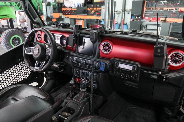 Mögötte a piroson és mellette a feketén már az sincs érdemben. Teljes szélességű LED sor a tetején, szúrófények a szélvédő tövében, öntöttvas lökhárítók, mindenféle konzol, amikre terepjárósok tudják, miket szokás felszerelni, én viszont csak pillázok. Az utastér sem gyengébb, számtalan új univerzális konzolt látok, amiken rádiók, műszerek, navigációs eszközök figyelnek, mintha a hadsereg egyik járművében nézelődnék. Ezekkel tartják a kapcsolatot egymással, amikor kirándulnak járatlan helyeken és hasonlók. Gergőék nem a somogybabodi sárdagasztós off-roadozást nyomják, bár a gépek kétségkívül alkalmasak lennének rá, ők inkább az olyan helyeket keresik, amerre más nem jár.