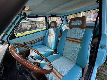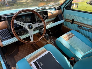 A kocka Panda már eleve nem filléres autó, de a 4x4 verzió egyszerű összkerékhajtásával egészen drága mulatság, a tulajdonos is milliós összegért vette, majd az autó árának többszöröse ment el a felújításra, az eredetileg fehér autót csupasz karosszériáig szedték szét, hogy kívül-belül megkaphassa ezt a vidám színt, majd egy egyedi kárpitozással dobták fel. A Panda rengeteg limitált szériája közt a Riva nem szerepelt, viszont a hajós-szörfös jelleget így próbálták kiemelni, és a márkatárs 500-asból eleve létezett Riva, így aztán mi vidáman megbocsátjuk, hogy ez nem teljesen eredeti így, az aprólékosságot fémjelzi, hogy a tulajdonos három szettből állította össze a szép, jól működő Carello kiegészítő fényszórókat.