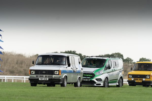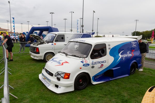 És IGEN!!! Egy szűk kordonnal körülzárt területen egy Mk2-es Transit mellett ott volt a Supervan1, a Supervan2, a Supervan 3 és a Supervan4 meg a 4.2 is. Hogy a képen négy autó látszik, én meg hatot soroltam fel? Nem véletlenül. Ugyanis a Supervan3 az egyben a Supervan 2 is, mert a 3-ast úgy építették meg, hogy kis túlzással egyszerűen lecserélték a vázra szerelt műanyag karosszériát, mint egy RC modellen. Sajnos úgy tűnik, a Supervan2 karosszériája ezután megsemmisült, így a gyár kénytelen volt egy hangulatában a Supervan2-t idéző, szimpla dobozos Mk2-est építeni. Illetve a fullelektromos Supervan4 alapjaira készült az igazi versenyautós teljesítményekre képes Supervan 4.2 – ez az autó durva időket futott a Pikes Peaken, Bathurstben, a Goodwoodi hegyi felfutón meg a Top Gear tesztpályán is.