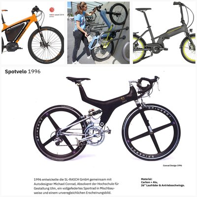 1997-ben Michael Conrad önálló vállalkozásba kezdett a con-rad design cégnév alatt, majd röviddel ezután együttműködésre lépett az SL Rasch GmbH-val. Az együttműködés során többek között koncepciótanulmányok születtek sivatagi régiókba szánt speciális terepjáró járművekről vagy a mozgásukban korlátozott személyeket segítő kisebb vonatokról. Az Ulmi Formatervezési Egyetem végzettjét mindig is vonzotta az innovatív és időtlen, nagy használati értékű tárgyak tervezése, amelyek gazdagítják és megkönnyítik a mindennapi életet – távol a tömegfogyasztási cikkektől. Az irodabútorok, elektromos készülékek és játékok mellett pályafutása során főként autókat tervezett, de néhány éve teljes mértékben a(z elektromos) kerékpárokra összpontosít.