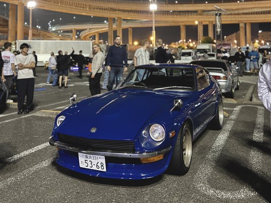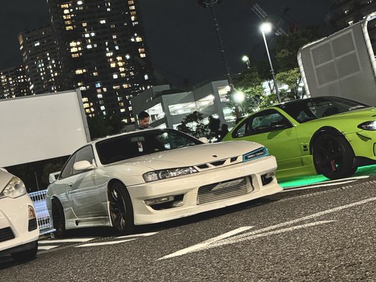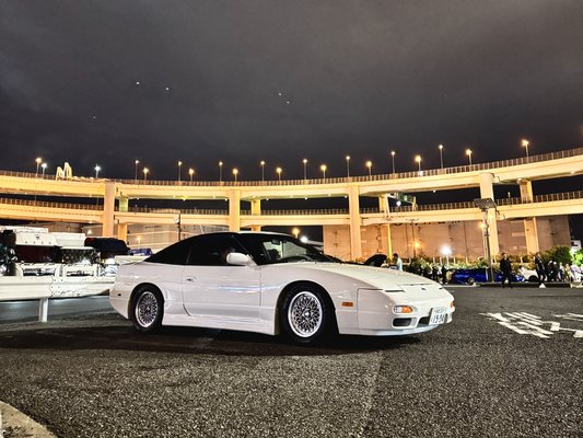 Random csütörtök este 9 óra körül már tele a parkoló autókkal és emberekkel is. Sokak szerint az esti már az influenszerek és turisták Daikokuja, amiben van igazság. Az autók fele bérelt, szerveznek is ilyen tuningautós kirándulásokat, amikre megfelelő összegért be lehet fizetni. Sok a díszhuszár, az autókkal pózoló, furcsa arcú turista csajok, de őszintén nem igazán érdekel, amíg majdnem mindenki R34 GT-R-rel meg épített Evókkal jön. A helyi arcok látványosan a széleken gyülekeznek a friss gumiporos Silviákkal és Skyline-okkal, a neonos subarusok is befutnak, a soareres arc meg csak guggol az autója mellett és csendben imádja a művét.
