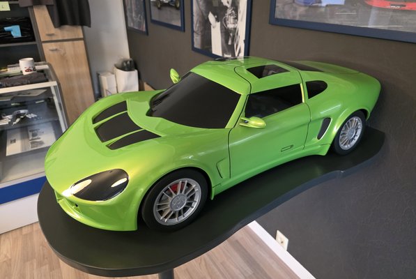 Ahogy Sepp meséli, „a harminc-negyven évvel ezelőtt nekünk dolgozó szakemberek is beálltak, összevadásztuk az alkatrészeket, s összerázódott a csapat, gyakorlatot szerzett, bizonyítván, hogy életképesek vagyunk. Tizenketten voltunk akkor, az RS2000-es gyártására készülve nyolcan maradtunk, majd végül a csapat 15 főre bővült. Egy híres angol sportkocsi alapjaira építettük – a váz a Lotus Exige-é. A kompozitból és alumíniumból készült karosszéria mellett lényegében maradt a futómű is. A legnehezebb feladatnak a kivehető üveg tetőpanelekkel ellátott szárnyas ajtók kialakítása bizonyult, ezek karosszériába installálása nem ment simán.” Háromféle kivitelt terveztek, utcait, versenyváltozatot és extrémet.