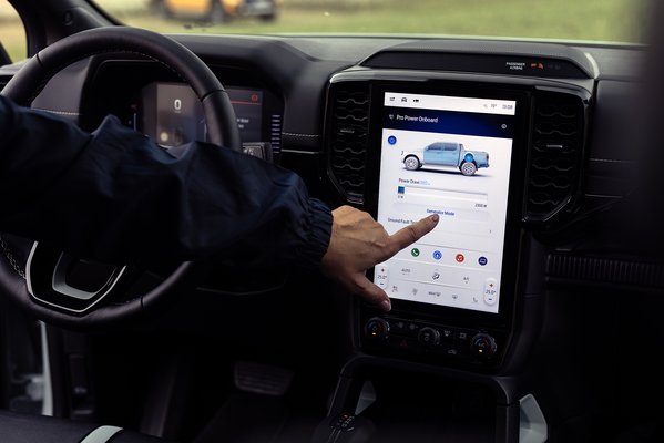 A Ranger PHEV esetében az autó maga az aggregátor. A platón található csatlakozókon keresztül a jármű nagyfeszültségű akkumulátora képes árammal ellátni a külső eszközöket, méghozzá nem is akárhogy: akár 6,9 kW teljesítményig.