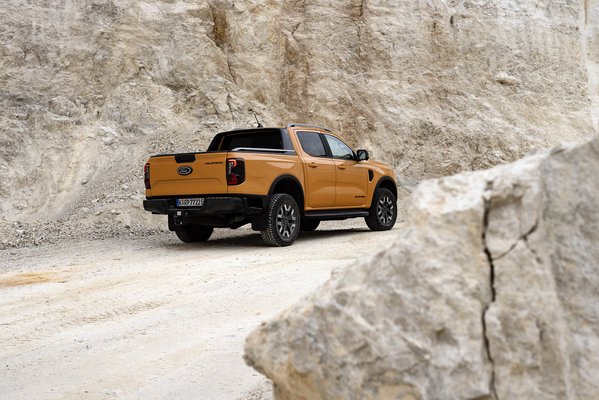 ● Terepképesség: Az akkumulátorok vízhatlan szigetelést kaptak, így a gázlómélység maradt 80 centiméter. A Ranger PHEV ugyanúgy átmegy a folyón, mint dízeles testvérei. Az e-4WD rendszer automatikusan osztja el a benzines, elektromos vagy hibrid hajtás forgatónyomatékát a négy kerék között, így nehéz terepeken vagy speciális helyzetekben is mindig elegendő vonóerő áll rendelkezésre, az igazán kemény feladatok megoldásában pedig további segítséget jelent a felező terepváltó és a hátsó differenciálzár. A vezető választhat a normál, eco, sport, csúszós, vontatás, sár és homok üzemmódok között, amelyekben a Ranger PHEV mindig annyi nyomatékot küld az egyes kerekekre, hogy az autó a lehető legjobb teljesítményt nyújtsa.