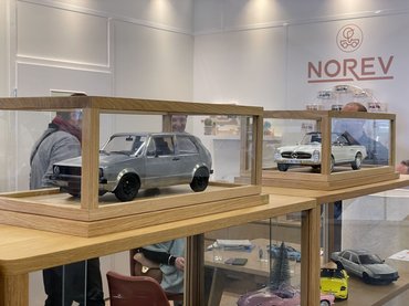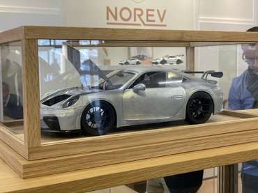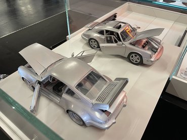A gyártók mindent bevetettek, hogy levegyék a lábukról az autós arcokat. Az Ixo standján például több prototípust is megnézhettünk: egy üvegezett fiókból szürke, fényezetlen 1:12-es 964-es Porschék csúsztak ki, mellettük egy vitrin dugig volt 1:18-as, még tervezési fázisban lévő modellekkel.