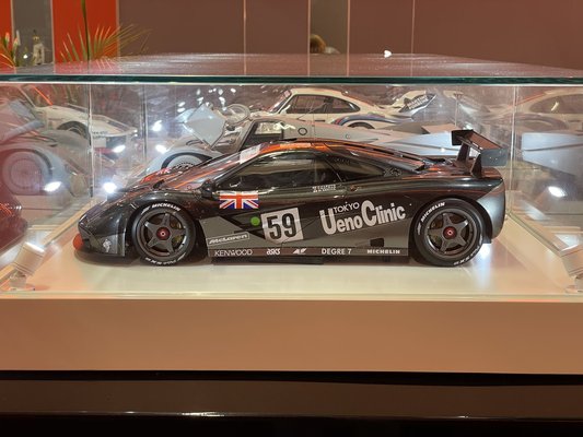 A személyes kedvencemet is náluk találtam meg: az 1:8-as méretarányú, Ueno Clinic dekoros McLaren F1 GTR mellett percekig csak csendben álltam, hogy én ezt nem hiszem el. Annyira lenyűgöző volt élőben az 1995-ös Le Mans győztesének kicsinyített változata, mint semmi más. Egyébként ez is prototípus volt, és megtudtam, hogy még ők se tudják, hogy otthon összeszerelős szettként vagy egyben árulják majd. Azt viszont elárulták, hogy nagyjából 1200 eurót, vagyis 460 ezer forintot kérnek majd érte. Legalább nem 8 milliárd, mint az eredeti.