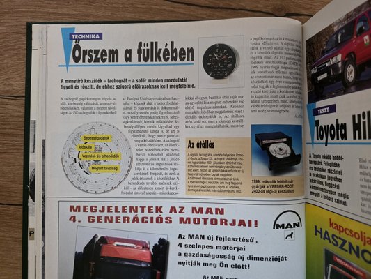 Közben az elmúlt évtizedek alatt én is tovább képeztem magam a témában, kiváltottam és használom a digitális tachográf kártyát, a Waberer’s újságírójaként éveken át kiküldött tudósítóként vezettem az új nyergesvontatókat, a belső, Téma című újságjukban pedig oldalakon keresztül mutattam be az újdonságokat. Részt vettem különböző tachográf- és rakodástechnikai tanfolyamokon és képzéseken, lehetőséget kértem az autópálya-rendőrségtől, hadd legyek jelen ellenőrzésekkor, megismerhettem a német hatóságok ellenőrzési protokollját is, és így tovább. Szóval, az eltelt lassan három évtizedben számtalan szakértővel cseréltem már véleményt a témában, miközben igyekeztem naprakészen tartani tachográf-tudásom.