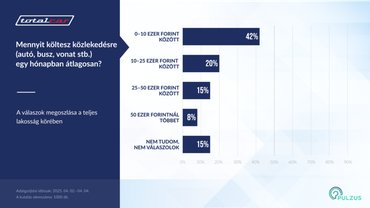 Tízből négyen havonta kevesebb mint 10 ezer forintból letudják a közlekedést. Miközben 8 százaléka a lakosságnak havonta minimum 50 ezer forintot elközlekedik. Íme a Totalcar megrendelésére készült Pulzus-kutatás érdekes számokkal. Különösen a fiataloknál.