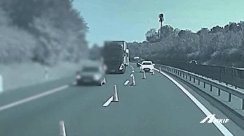 Hírek baleset 2024. 10. 08. 12:17 Úgy csapódnak autósok ütközéselnyelőkbe az autópályán, mintha nem lenne holnap Azt hitte elég gyors a manőverhez, de már az első kidöntött bójáknál látszott, hogy nem az.