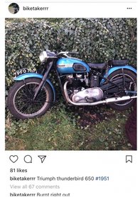 Totalbike veterán 2018. 02. 15. 13:00 Felgyújtották a tolvajok a veteránt, miután nem kapták meg a váltságdíjat Az Instagramra töltötték fel a lángoló Triumph-ot.