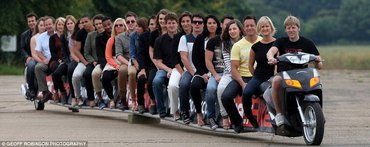 Totalbike rekord 2011. 08. 04. 16:21 25 személyes robogó Hosszabb, mint egy busz, igaz, még annál is nagyobb a fordulóköre.
