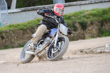 Harsogta Marco Belli, olasz flat track-legenda, és hasát fogta a nevetéstől, miközben birkóztam a zúzásra felkészített Deus Yamahával. Azt hittem, a fekete mamba gyorsaságával fogom elsajátítani a csúsztatásra specializált motorosiskola feladatait, de nem így történt.
