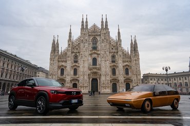 A Mazda MX-30 alakja vitathatatlanul mai, most mégis 1981-ből tűnt fel egy elfeledett koncepció, mely akár szellemi elődnek tekinthető. És a Milánói Dóm előtt készült gyári fotó sem véletlen, a japán cég sok szálon kapcsolódik az olasz formatervező hagyományokhoz.