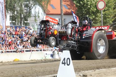 A Double Screamin' becenevű holland traktor áll be a szán elé. Traktorra persze csak nyomokban emlékeztet, a létraváz egyik végében két kompresszoros V8-as pörög, a másik végében pedig két röhejes méretű kerék között ül a pilóta. Felakasztják a szánt, majd óvatosan előregurul, már amennyire 5000 lóerővel óvatosnak lehet lenni. Bántóan egyenetlen az alapjárat, de egyszerre kisimul, a húszcentis kipufogók úgy üvöltenek, hogy szétreped körülöttük a tér.