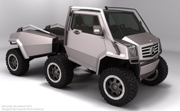Hírek mercedes 2010. 05. 22. 11:24 Hatkerékmeghajtású Mercedes G osztály A két extra kerék kis csuklós szerelvényen megy a terepjáró után, és olyan helyekre tolja föl a Mercit, ahová mászni is nehéz.