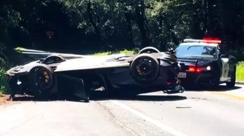 Hírek baleset 2025. 05. 08. 10:22 Rendőrautóval tolták le az útról a tetőre rakott Lamborghinit Hallani, ahogy súrlódik és csikorog a szénszál az aszfalton.