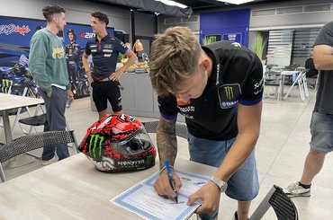 Totalbike sisak 2025. 08. 22. 09:56 MotoGP pilótákkal írattunk alá két sisakot, magyar gyerekeken segítenek velük Fabio Quartararóval és Brad Binderrel találkoztam a MotoGP magyarországi fordulója előtt, akik egy-egy dedikált sisakkal segítenek a daganatos gyerekeken.