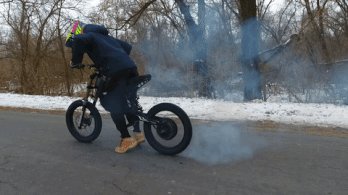 Péter nem a szavak embere, inkább cselekszik: megtetszett neki az elektromos rásegítésű bringa ötlete, ezért épített egyet. Már az első ilyenje is rendesen ment, de akit egyszer meglódít a villanymotor nyomatéka, az mindig többet akar. Idővel elmaradt a pedál, hiszen 70-80 körül már elég nehéz tekerni, és a wattok egyre csak jöttek. A mostani motorja akár 100 km/óra felett is tud, ezt próbáltuk ki.