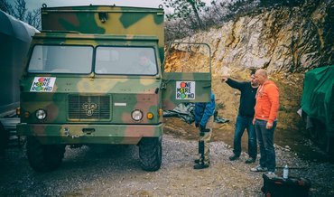 Végre elérkeztünk a II. világháborús szekcióhoz, minden idők legaranyosabb és legtöbbet bizonyított célszerszámát kaparinthattuk a kezünk közé: Willys Jeep, 1945-ből. A szokásos fékmizéria után megjárattuk a hegyen és Kopasz is tisztelgett a szlovén kulturális miniszter delegációja előtt, mindenkinek jutott egy kör a jóból. Bemelegítésként egy szintén korabeli csapatszállító eszközt motoztunk meg rendesen, a bámulatos haditechnika valakinek még a homlokára is csapott.